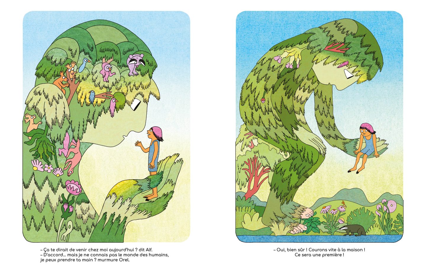 It’s late summer, Alf goes to meet his friend Orel in the forest. Orel is not a child like him, but a spirit of nature who takes him on a tour of the seasons, their rhythms, their colors, and many other wonders. Alf discovers a thousand sensations, surrounds himself with plants and a multitude of animals, slips on ice and plunges into rivers. An album that tastes like childhood, friendship, nature and humanity.