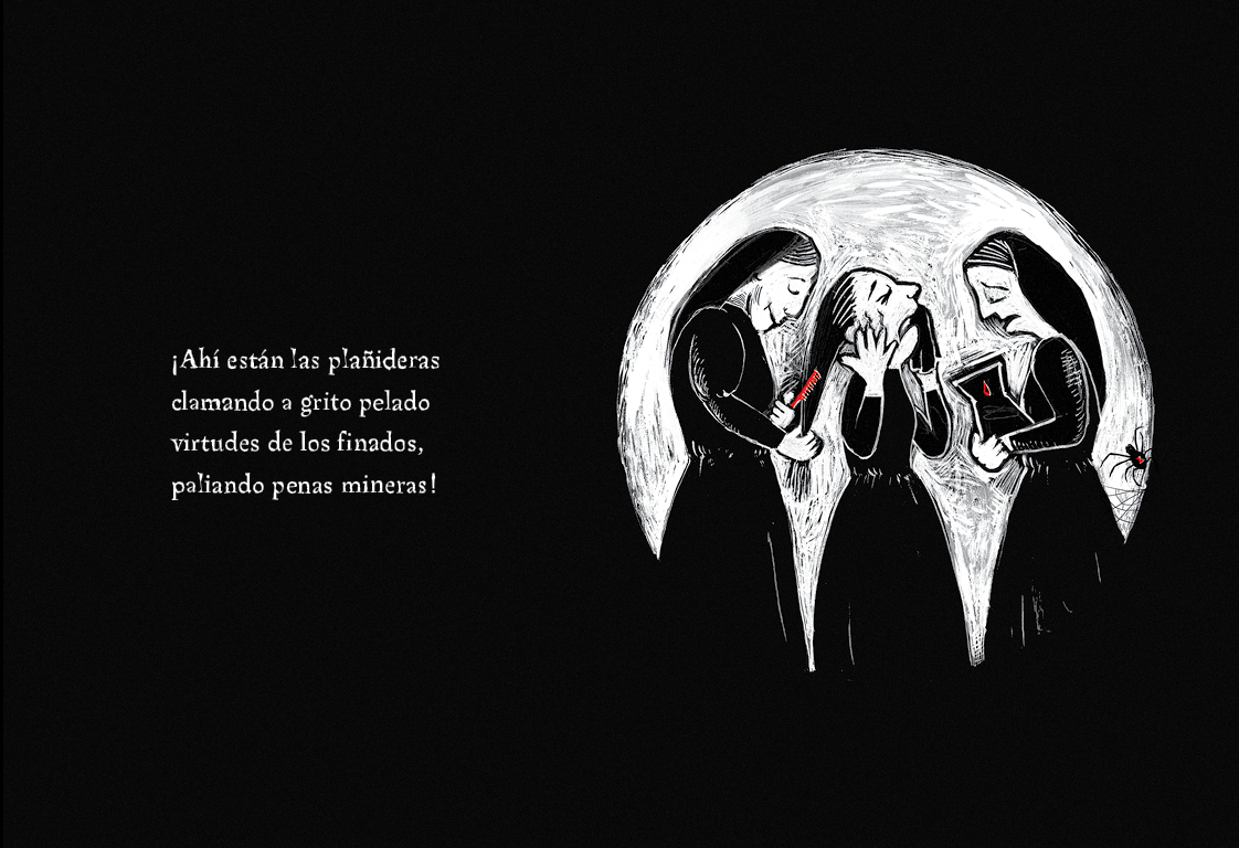 The popular belief was that the mourners’ crying helped to purge the soul of the dead, facilitating their entry into paradise, although the Catholic Church considered it a pagan and superstitious act. In the coal-mining culture of Lota, women took turns standing next to the coffin, because most of the time they had to attend to the mourners.