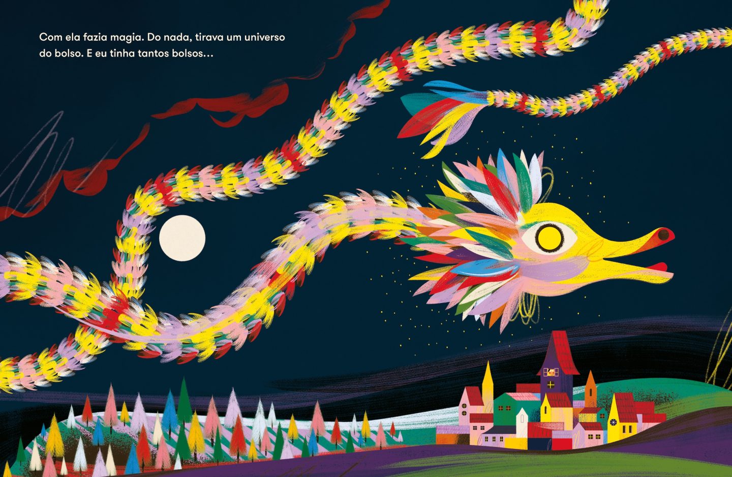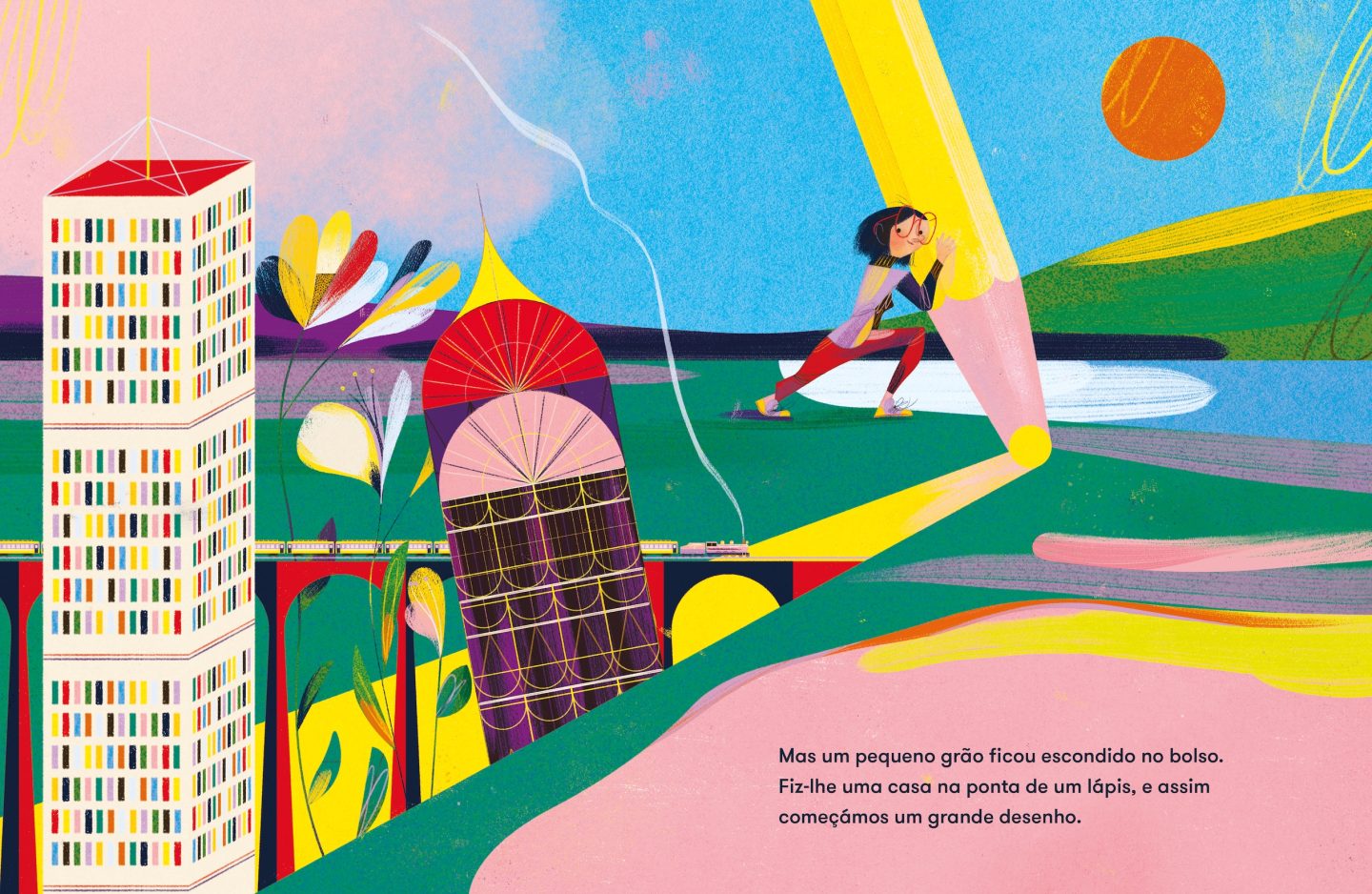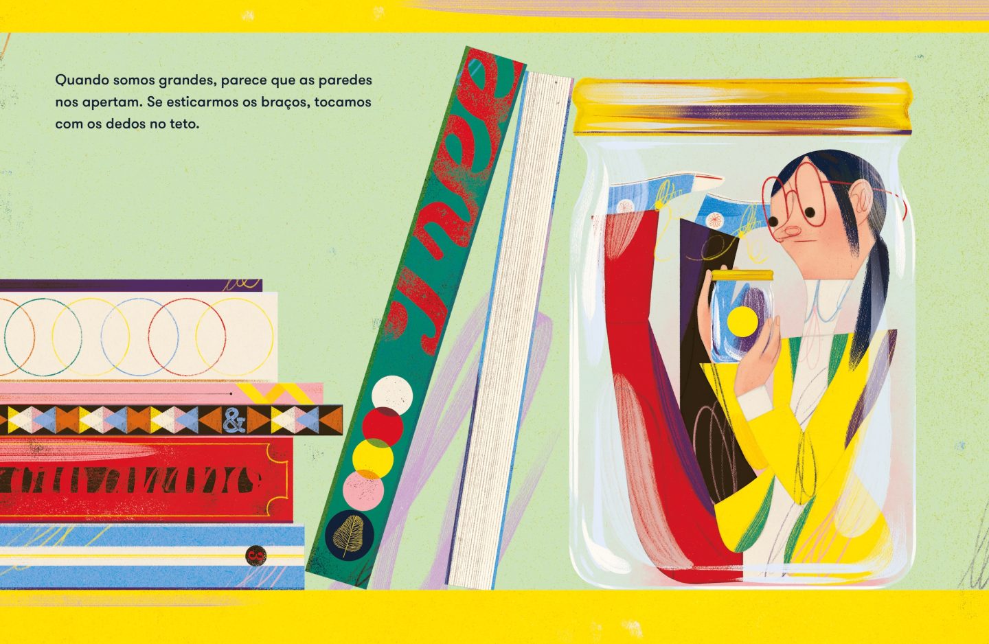 From childhood to old age, GONÇALO VIANA's vibrant illustrations walk us through the life of a little girl, who is always accompanied by a restless, shiny and mysterious yellow ball with an odd name: imagination.