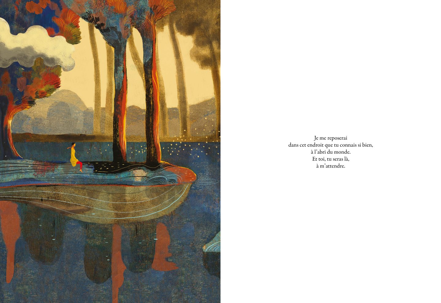 It’s often at the turn of a path that animals, flowers or even stones whisper their secrets to our ears. What if you stopped for a moment to listen? In twenty luminous plates, the Italian duo composed of Guia Risari and Andrea Calisi invites us on a gentle, poetic journey, through highly mastered illustrations to immerse ourselves in a magnificent ode to contemplation.